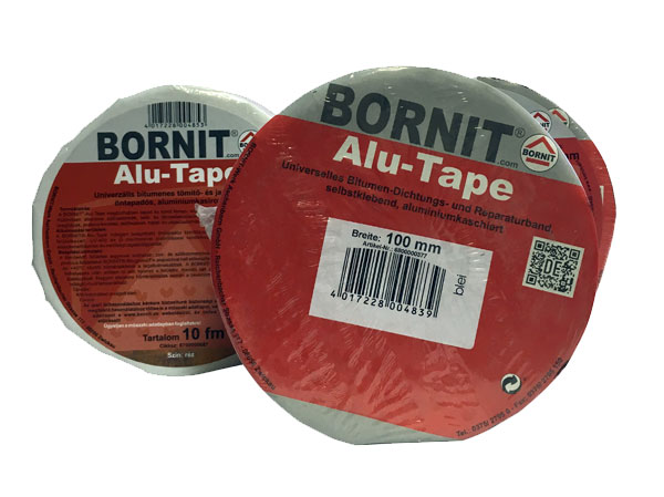 A BORNIT® alumínium ragasztószalag megbízhatóan ragaszt és tömít fémet, műanyagot, betont és fát. Kiválóan alkalmas ereszcsatornák, tető- és falcsatlakozások, árnyékoló burkolatok, üvegtetők és üvegházak, acélszerkezetek, tetőburkolatok, ereszlemezek és vápalemezek, stb. szigeteléséhez.